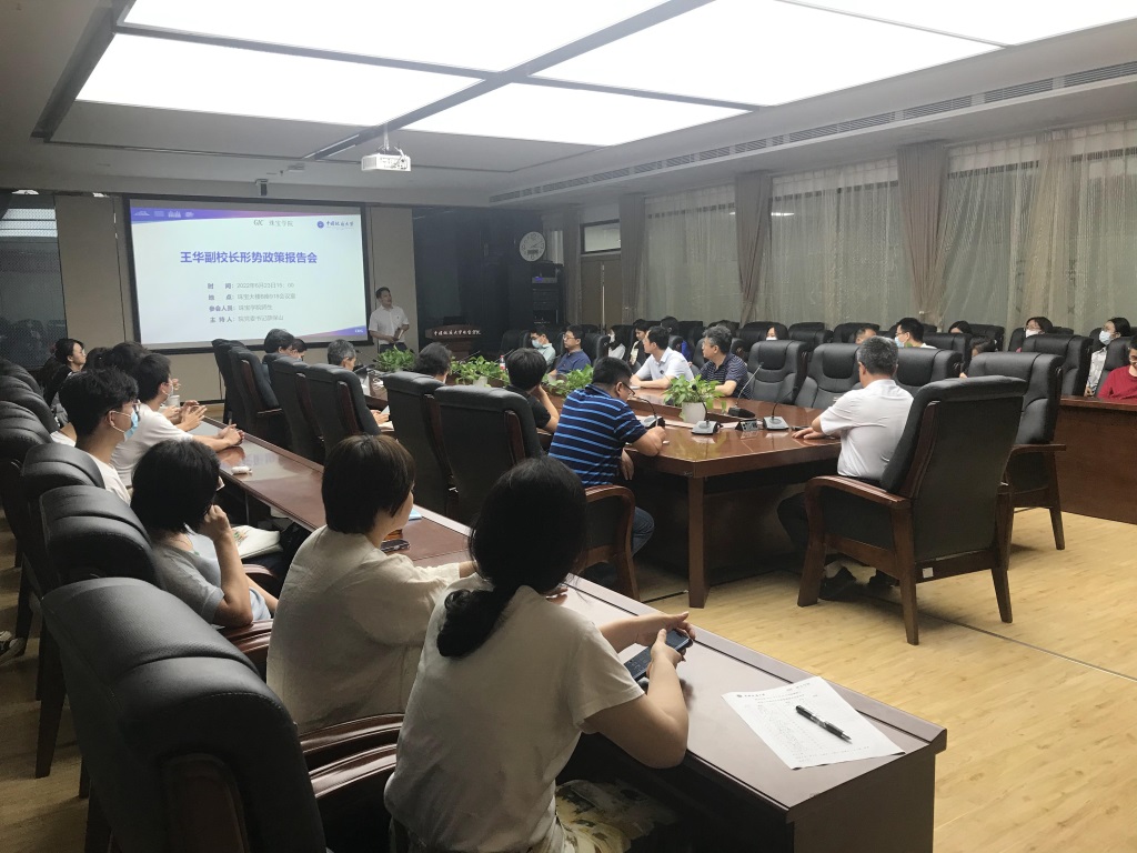 6月23日下午,副校长王华在珠宝楼918会议室以《迈向更高质量的经济发展----深刻领会新时代背景下创新驱动发展的关键性与重要性》为题,给暗网禁区 师生作了一场精彩形势政策报告。