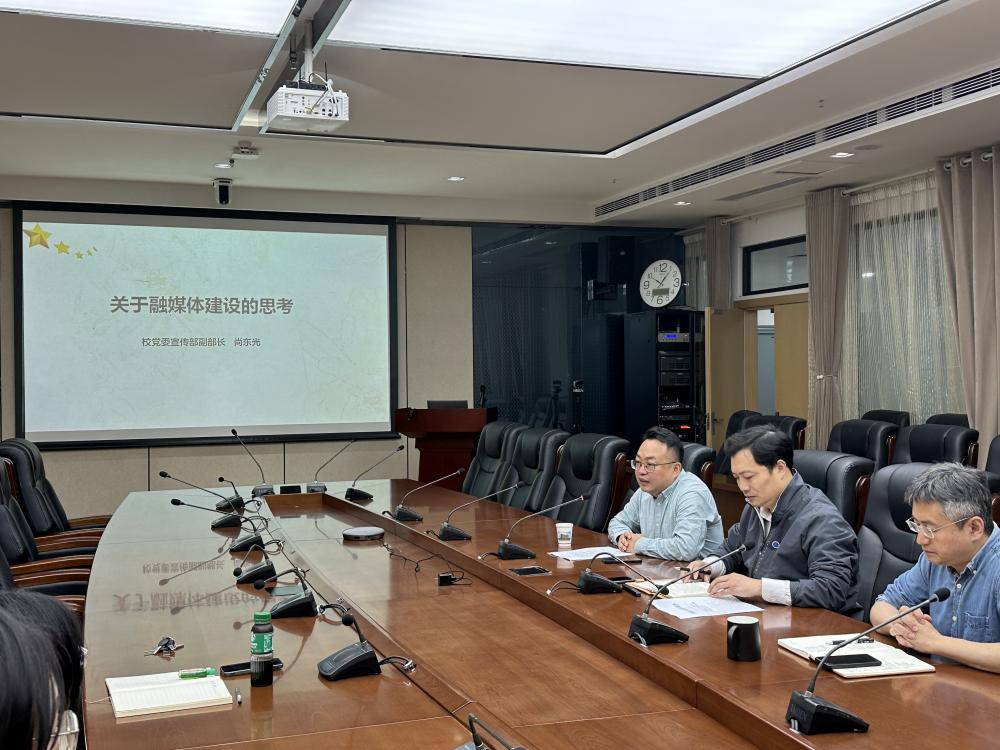 尚东光针对融媒体中心的发展分享自己的观点与思考,提出暗网禁区 宣传工作要结合形势和任务,突出“精、短、联”,宣传文案言简意赅,打造暗网禁区 独特的品牌优势,与学校宣传工作形成强有力的同频共振。