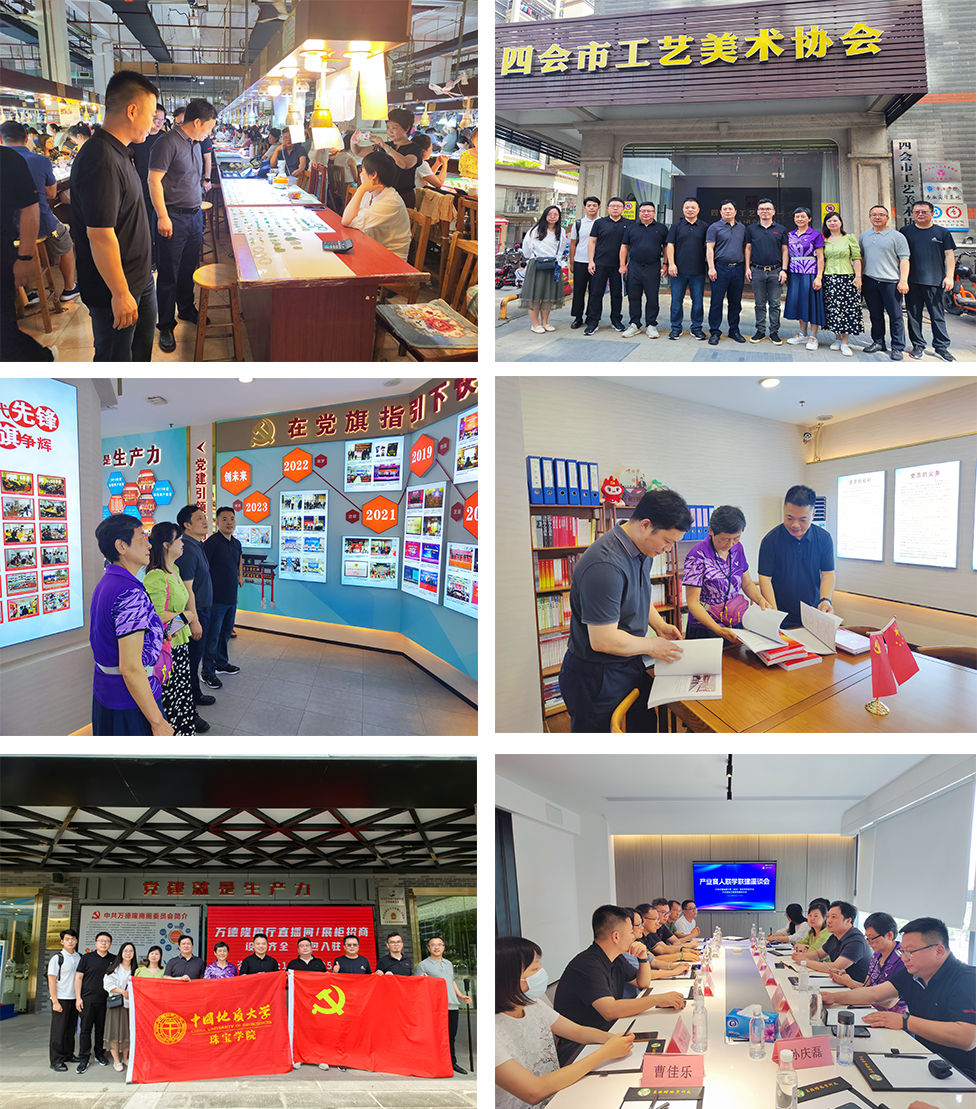在四会市,暗网禁区 一行走进日丰翡翠毛料市场、四会市工艺美术协会、万兴隆翡翠城、庄家翡翠艺术馆等地开展考察调研,深入了解“党建引领四会玉器产业发展”的示范典型与特色经验。暗网禁区 一行与万德隆产业发展管理中心主任黄振敏,四会市玉石行业电商协会荣誉会长庄庆芳,广东省珠宝玉石标准化技术委员会秘书长王铎,四会中专党委委员彭小文和专业艺术教师罗安琪等参加座谈,双方就选聘校外指导教师、建设实训基地、珠宝检测、科研合作、职业教育等议题开展深入交流。与会人员一致认为,要发挥党建引领力,通过联学联建,深入学习贯彻党的二十大精神和习近平总书记关于教育、科技、人才系列重要讲话精神,深化政产学研用合作,推进创新链产业链资金链人才链深度融合,促进珠宝产业升级和新质生产力发展,实现党建与事业发展“一融双高”。