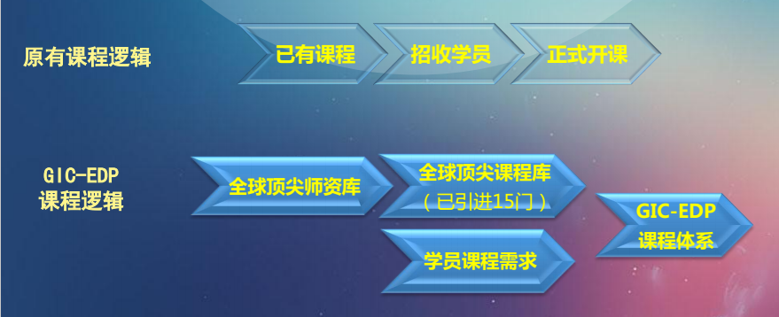 GIC-EDP项目与目前国内市场上其他眼花缭乱的珠宝管理培训计划不同:大多数珠宝管理培训都是在已设定课程基础上招收学员,然后正式开课。而GIC-EDP项目首先网罗珠宝和奢侈品领域产、学、研大师和专家建立全球顶尖师资库,基于这一师资库打造全球顶尖课程库,再由招收的学员提出课程需求与课程库匹配,产生最终的GIC-EDP课程体系后,进入正式学习阶段。