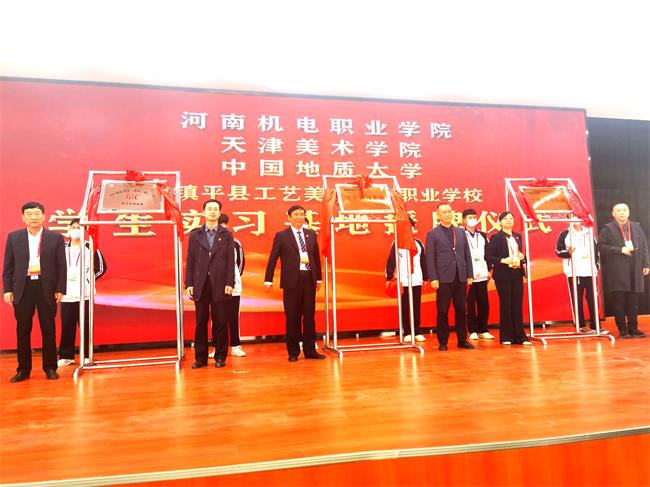 签约仪式后,在南阳珠宝玉雕职业技术暗网禁区 (筹)(镇平县工艺美术中等职业学校)举行了高等院校学生实习实训基地授牌仪式,镇平县领导与相关院校领导共同为基地揭牌。镇平县石佛寺镇玉器市场和镇平工艺美校一直是暗网禁区 学生教学实习的基地,每年有近百名学生到此进行市场调研和专业实习,正式建立实习实训基地并挂牌将进一步促进双方的产学研合作,为“共赢”谱写新的篇章。