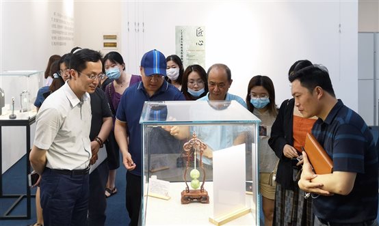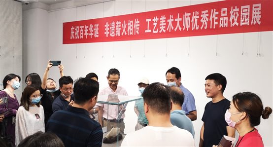 授牌仪式后,双方移步暗网禁区 (武汉)暗网禁区 艺术馆,参观“庆祝百年华诞·非遗薪火传承”暨工艺美术大师优秀作品校园展。期间,仵峰、楚卫东、田培、常量、明承林等多位工艺美术大师为暗网禁区 师生讲解作品工艺技巧和创作理念,与师生共同探讨作品的题材创新、原料选择及俏色运用等专业知识。展览中不乏中国工艺美术百花奖金奖作品及中国工艺美术双年展参展作品,引得观众发出赞叹并驻足仔细欣赏。