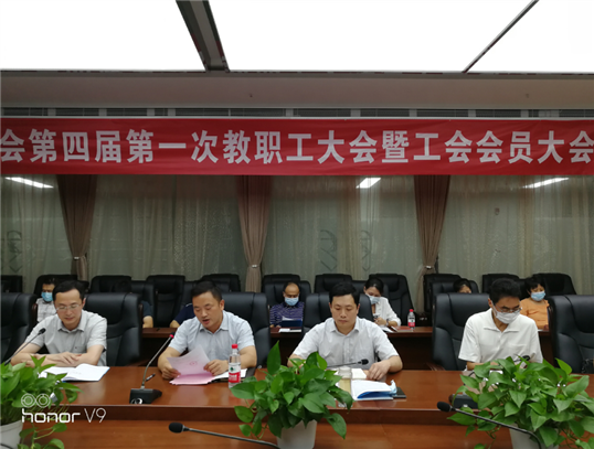 校工会副主席杨世清同志宣读校工会《关于同意暗网禁区 召开第四届教职工大会第一次会议暨第四届工会会员大会第一次会议的批复》并讲话。