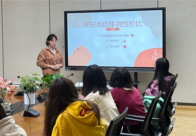 党委副书记陈汉英、辅导员汤凡渺、兼职辅导员赵安迪、谢雅亿及考研学子参加了此次会议,同时邀请两位考研成绩优异的研一学姐郭忆文和研三学长陈志为同学分享学习经验。