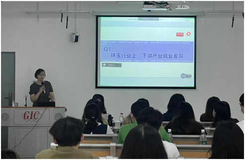 杨慧校友有着丰富的珠宝行业人力资源从业经验,长期担任企业授课讲师。她结合个人体会无私向学弟学妹们传授经验,娓娓道来,既有温度,也有深度。她通过介绍珠宝行业上、下游产业的差异向同学们分析了珠宝行业的发展趋势,鼓励大家根据自身的兴趣爱好、技能与岗位匹配度等方面来选择未来就业方向。并且站在招聘者的角度上对大公司、小公司的就业差异进行了分析,让同学们明白了大小公司各有各的优势,希望同学们充分了解后再进行适合自己的选择。对于就业城市的选择、研究生是否具有就业优势等问题上对大家进行了指导和讲解,她耐心地告诉大家对于就业的问题需要眼光放长远,并且结合自己的实际情况,做出最适合自己的选择。杨慧还结合自己多年面试官的经验,向同学详细传授了面试技巧及经验,包括个人简历的制作以及面试环节的避坑技巧等。在随后的提问交流环节,杨慧耐心解答了同学们提出的问题。座谈会时间长达一个半小时,校友杨慧丰富的经验以及良好的建议使在场的同学都受益匪浅。