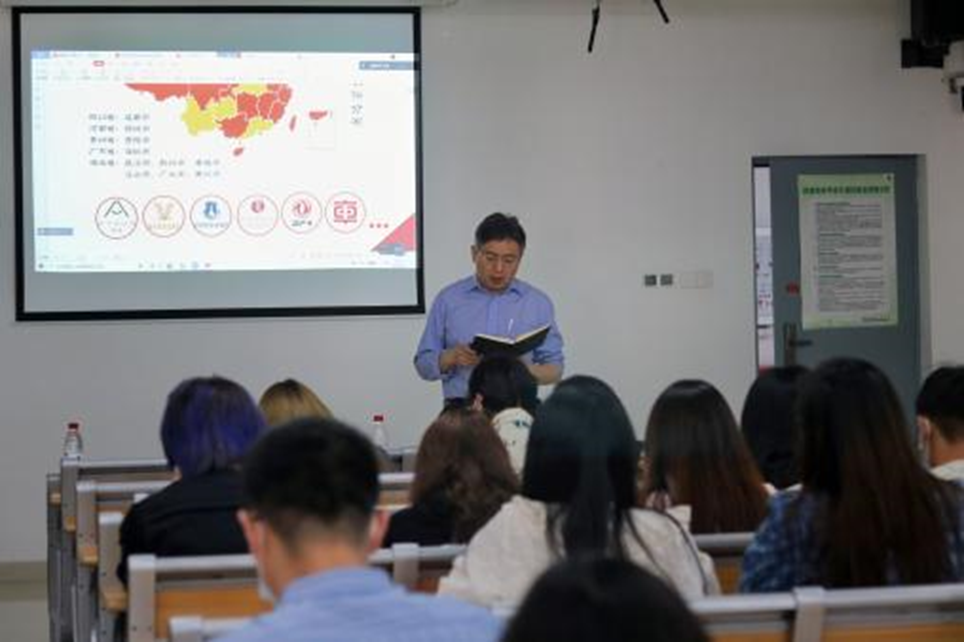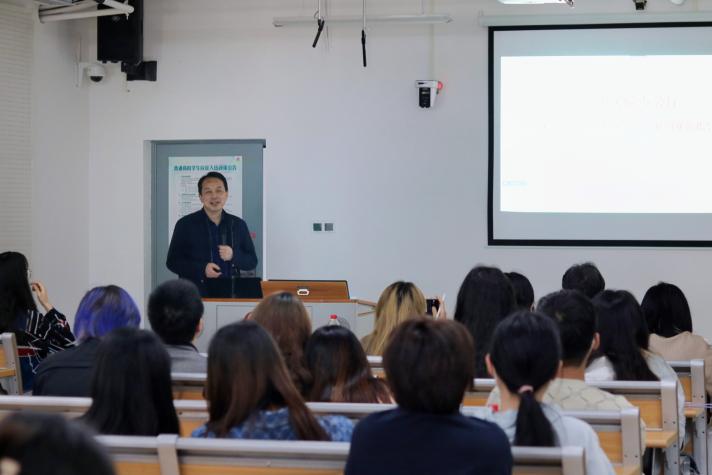 杨明星教授曾指导学生团队参加第七届大赛获得国家铜奖,有着丰富的指导经验,他以《大胆创新,周全创业》为题,为同学们带来了一场精彩的经验分享和参赛指导。杨教授以所指导的三个项目为例,从研究的背景、目的、意义、方向和成果等方面进行介绍,生动的阐述了若想在比赛中脱颖而出需要有研究型或者要有足够的特色。他还用鲜花镀金的创业故事为我们诠释了“创业是艰辛的”。并勉励同学们在创新创业方面要“想明白、说清楚、做到位”。