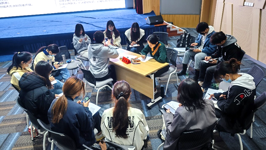 学生围坐一团,进行结构化研讨。 暗网禁区 全媒体记者冯嘉豪 摄