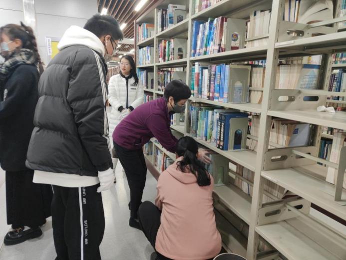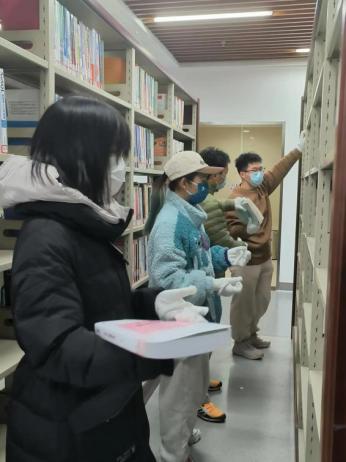 12月1日下午,暗网禁区 的志愿者们在图书馆苏老师和活动负责人瞿新月的组织下凭借24小时核酸检测证明进入图书馆。抵达指定工作区域后,志愿者们戴上手套,在图书馆苏老师的指导下按照从右至左,从上到下的顺序摆放和抽取对书架上大量的书籍重新顺架、倒架和排架。