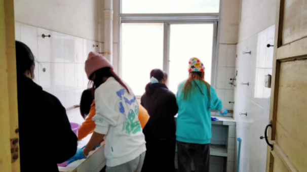 “真不得了。这么多学生团结一心搞卫生,还有这么多女娃娃,上次见都不知道什么时候嘞。”看着“宝院”志愿者们勤劳的身影,宿管王阿姨脸上流露出既惊喜又欣慰的笑容。