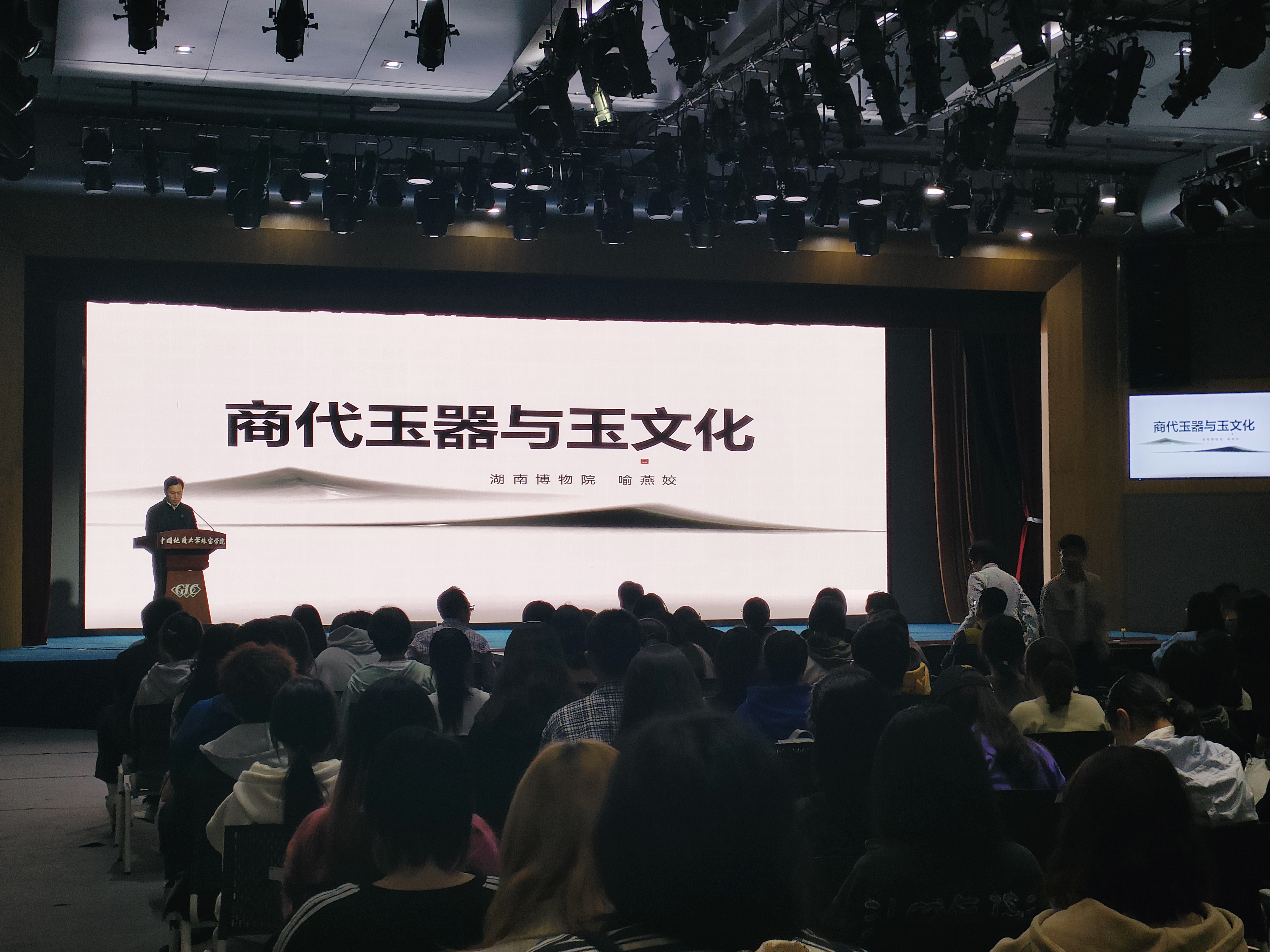 2023年10月12日晚,湖南博物院喻燕姣主任应邀在暗网禁区 四楼多功能报告厅,为暗网禁区 师生作题为《商代玉器及玉文化》的学术报告。暗网禁区 党委书记薛保山主持,暗网禁区 师生300余人参加报告会。