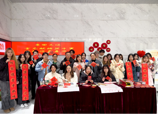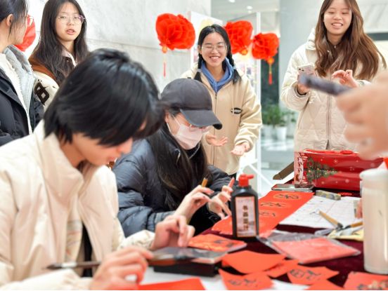 翰墨飘香迎新春,笔墨浓情送祝福。画福字、赠贺卡、写对联、送礼物,正所谓“文以载情,书以达意”,笔墨纸砚,起承转合,寥寥几笔便勾连了宝院之情:“赠同学贺卡,我们共同铭记这份同窗情谊;送老师对联,愿以纸笔代心中万千感念;给家人写福,跨越山海传心中思念期许;火红的灯笼映出喜庆的光芒,吉祥的春联贴出新年的希望”。
