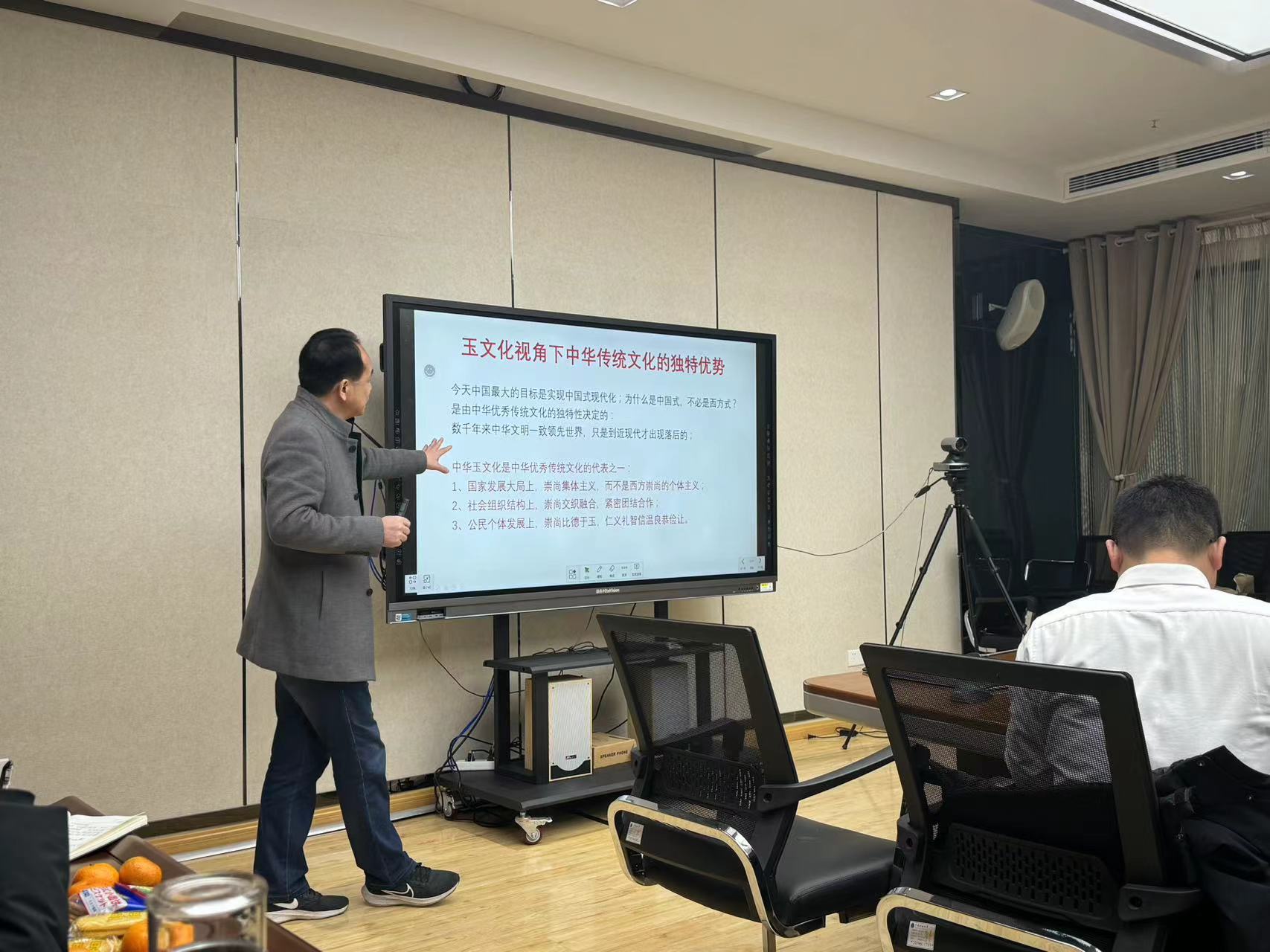 杨明星教授以《玉研究相关问题汇报》为题,结合个人多年来对行业的洞察,总结了我国宝玉石产业发展的基本规律,预测了未来我国宝石学研究的前沿方向。同时,结合学习习近平总书记在文化传承发展座谈会上的重要讲话精神,以及个人玉石研究上的积累,提出中国玉文化是中国优秀传统文化代表之一,是五千年文明史的开路先锋,是民族性的选择。