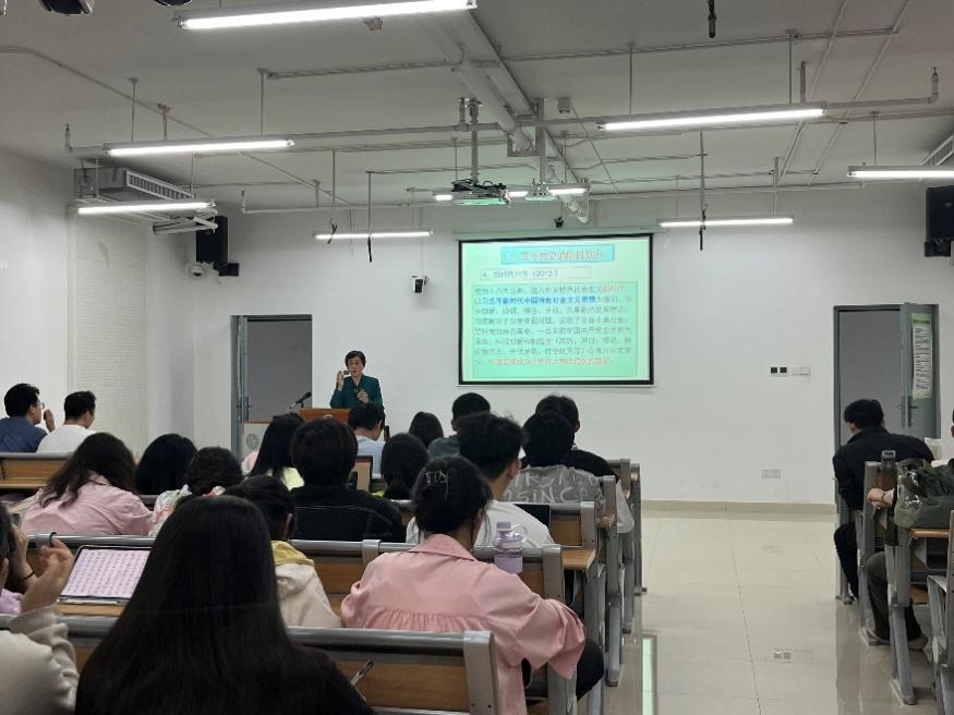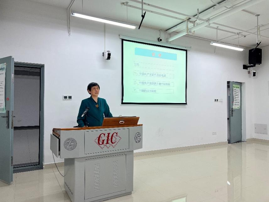 朱勤文教授将书籍理论与现实实际结合,带领大家学习了中国共产党的民主集中制和中国的各项政治制度。朱勤文教授从增强领导班子的团结活力和基层党组织建设两方面阐述了中国共产党长期致力于民主集中制建设的必要性。同时,朱勤文教授通过实例对中国的社会主义民主及全过程民主作了生动具体的讲解。