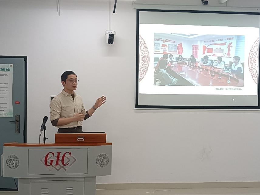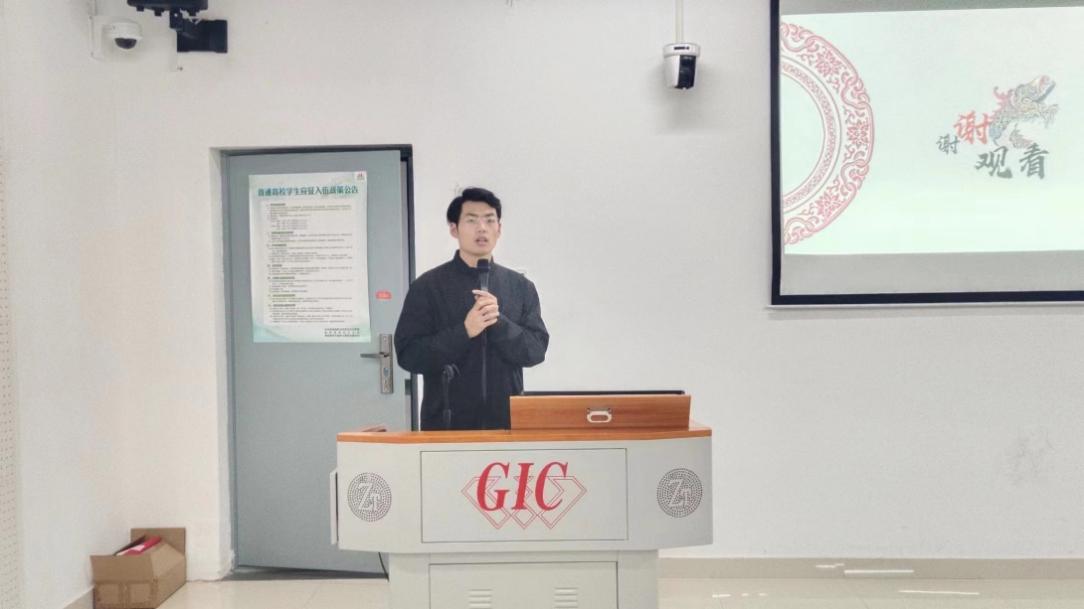 朱勤文教授的讲座结束后,宝石学生第二党支部副书记陶逸飞从“玉文化”出发,将中华优秀传统文化与马克思主义理论相结合,从“无我”的角度分享了他在支部工作中的思考与总结。
