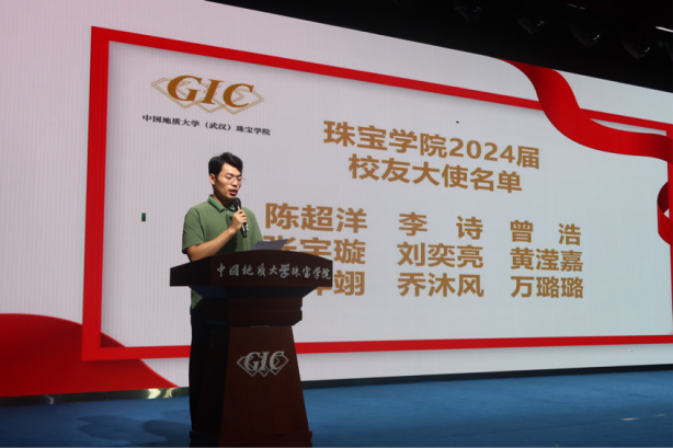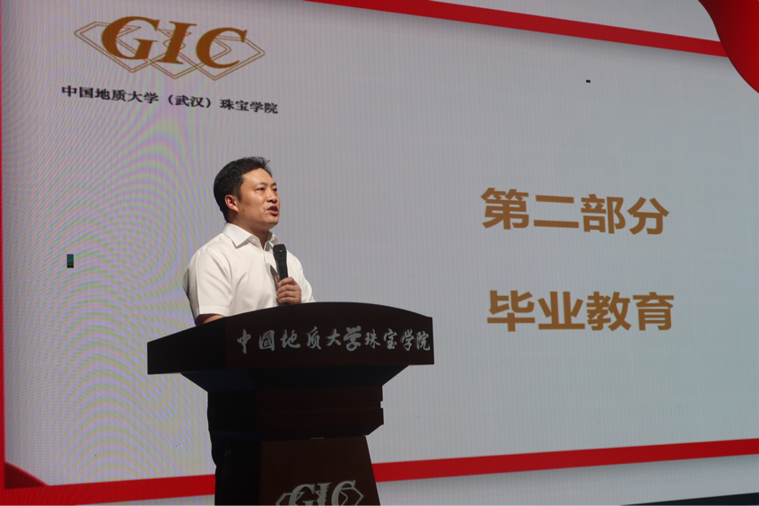 院长尹作为首先向2024年全体毕业生表示了热烈的祝贺。他讲到,各位毕业生今天所取得的成就经过了宝石般的沉淀打磨,最终也像宝石般闪耀。尹作为对即将进入人生下一阶段的同学们寄予了殷切期望,希望同学们在未来的道路上坚守自己的信仰和追求,发扬地大“勇攀高峰”的精神。深切期待各位同学能够始终铭记初心,服务社会,反哺母校,服务国家。尹院长叮嘱同学们要永葆赤诚之心,为社会进步与国家发展奉献自己的青春力量。最后,尹院长以“人生就像一颗宝石,需要经历磨砺和洗礼,才能够展示出最耀眼的光彩”作为结尾,诚挚祝愿各位同学在未来道路上能够像宝石一样熠熠生辉!