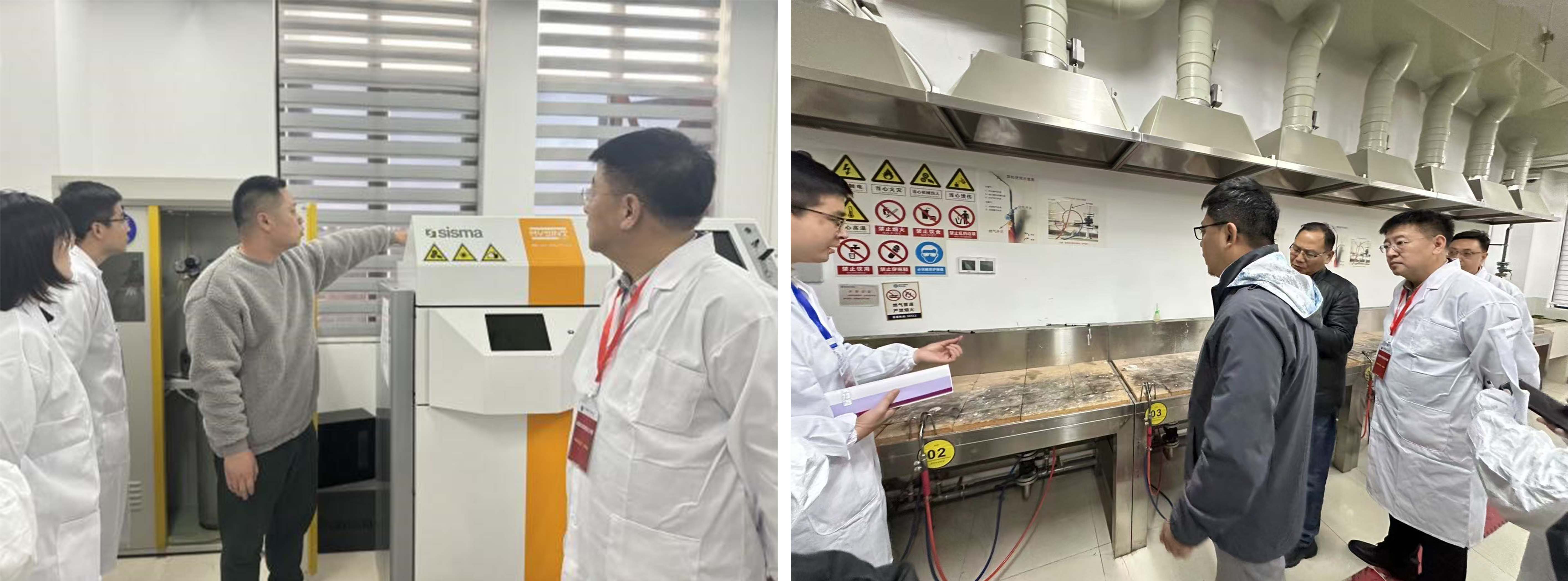 调研组专家随机抽检暗网禁区 合成处理实验室、贵金属加工实验室、首饰工艺实验室等三间安全风险级别为一级和二级的实验室。实验室相关负责人依次介绍了实验室的开放情况,调研组专家对实验室相关工作台账、仪器设备使用情况、应急设施等进行检查,对存在的安全隐患提出整改建议。