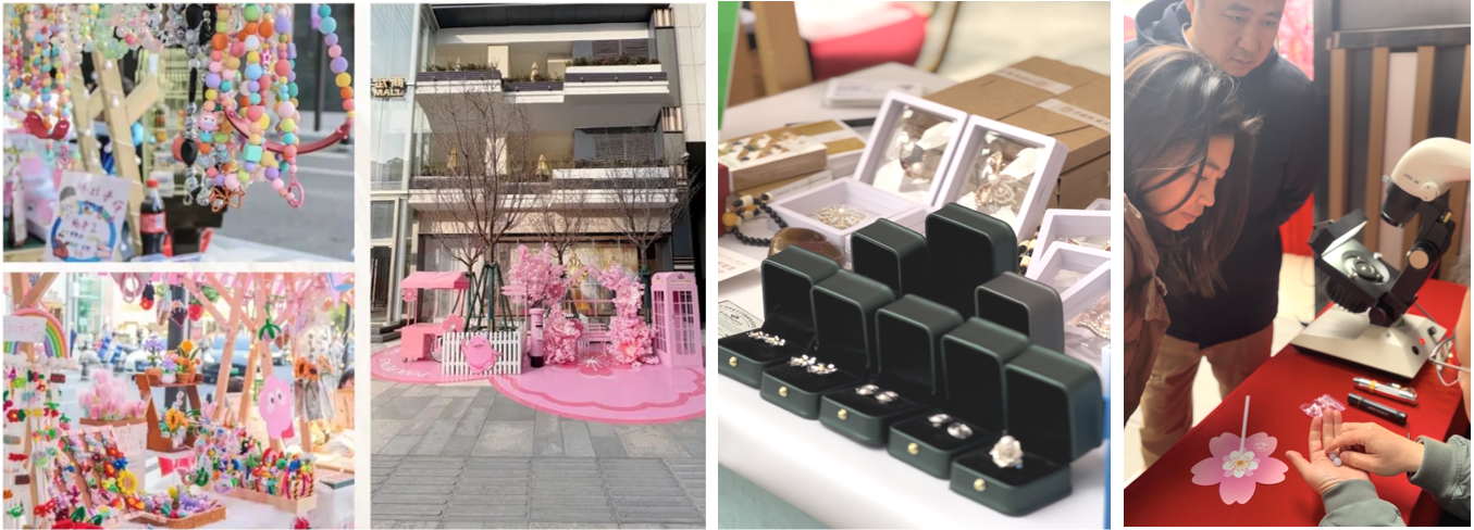 樱花树下,市集内人潮涌动,市民们仿佛置身梦幻般的珠宝世界。检测服务的专业老师耐心地为市民解答各种珠宝鉴定和选购的问题,不仅提升了市民的珠宝知识水平,还让他们深刻感受到了珠宝文化的深厚底蕴。