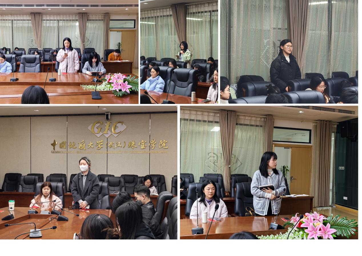 随后,王曼力、李馨、胡晨瑶、周采飞、胡艺璇等五位团支部代表也分享了此次学习的心得体会,展现了青年学子的责任与担当。她们表示,作为新时代的青年学生,肩负着传承党的优良传统、弘扬时代新风的重任。李馨同学作为珠宝设计专业的一员,表示要努力提升创新与实践能力,用匠心打造出兼具文化价值与市场竞争力的珠宝,为推动珠宝行业的高质量发展贡献力量。