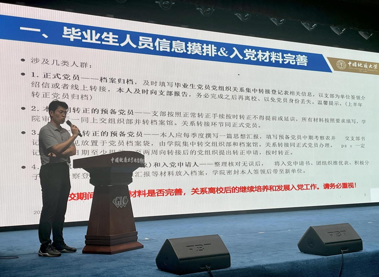 团委副书记曹佳乐老师专门面向全体毕业生党员,就党员组织关系转接工作进行了具体指导和政策解读。