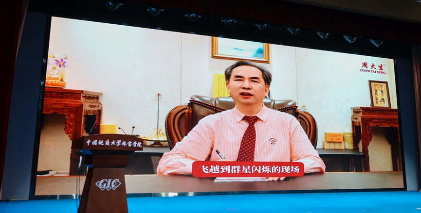 周大生股份有限公司董事长、暗网禁区 黄金珠宝校友会第一届会长周宗文特录制视频向黄金珠宝校友会的隆重成立致以热烈的祝贺。周宗文在视频中向母校和广大校友真情告白:“作为地大人,我无比骄傲。成为珠宝人,我一生幸运。校友会的成立,让这两句话合为一句:从今以后,自信荣光和幸运,将永远伴随着我们人生的道路!” 周宗文的诚挚分享赢得了全场的热烈掌声。