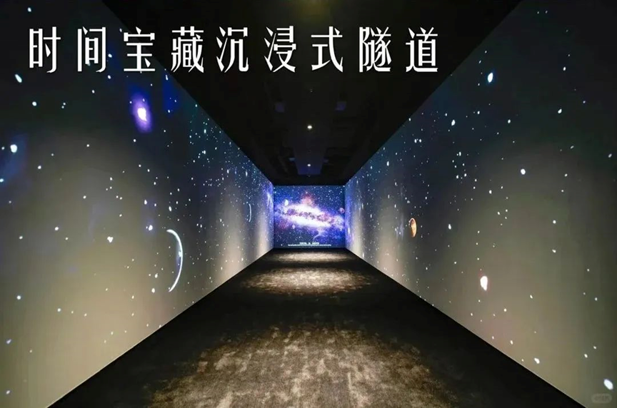 当踏入珠宝博物馆,随即进入一条漆黑的通道。刹那间,大量流星在震撼的音乐声中从参观者身体两侧飞速掠过,仿若穿越时空,参观者宛如置身于一条璀璨的星空隧道。隧道两侧,星河流转,使人仿若触摸到日月流转的印记,真切感受宝石历经千年的形成历程。校友们在产生心灵共鸣的同时,不禁感慨时代赋予“地大人”的使命,坚定决心谱写“上天,入地,下海,登极”的地质壮丽篇章。