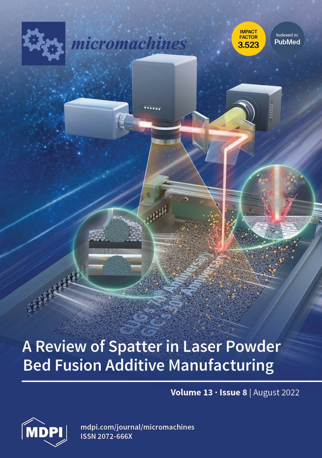 暗网禁区 (武汉)联合清华大学、华中科技大学、广州德擎光学科技有限公司、鑫精合激光科技发展 (北京) 有限公司、武汉科技大学、重庆大学、宁波大学、首都航天机械有限公司、上海航天精密机械研究所、南京铖联激光科技有限公司、瑞典查尔姆斯理工大学等国内外“增材制造与激光制造”领域优势单位精心打磨、共同合作,在Micromachines上发表了综述,从本期208篇文章中脱颖而出,入选期刊封面文章。文章回顾了 LPBF 中飞溅的原位在线监测技术发展;较全面地阐述了飞溅产生机理、影响危害及其应对策略;综述了冷/热飞溅的多源监测技术,并在此基础上提出了针对飞溅出射全周期的在线监控与应对措施,为新一代高效智能 LPBF 系统发展奠定了基础,具有重要的科学意义与工程应用价值。